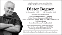 Auch wenn Du nicht mehr hier bist, bleibst Du für immer ein Teil von uns. Dieter Bogner * 21. September 1957 + 9. November 2025 In Liebe und Dankbarkeit: Dein Sohn Sebastian mit Christina Deine Tochter Simone mit Elisabeth Deine Geschwister Jürgen, Petra und Jutta mit Familien Dein Vater Franz Deine Enkel Jonas, Noah, Dominik Die Urnenbeisetzung findet am Freitag, den 28. November 2025, um 10.00 Uhr im Hauptfriedhof Landshut statt. Herzlichen Dank für alle Zeichen der Anteilnahme.