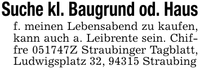 Suche kl. Baugrund od. Hausf. meinen Lebensabend zu kaufen, kann auch a. Leibrente sein. Chiffre ***Z Straubinger Tagblatt, Ludwigsplatz 32, 94315 Straubing
