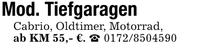 Mod. Tiefgaragen Cabrio, Oldtimer, Motorrad, ab KM 55,- €. _ ***