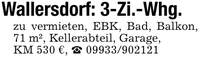 Wallersdorf: 3-Zi.-Whg.zu vermieten, EBK, Bad, Balkon, 71 m², Kellerabteil, Garage,KM 530 €, _ ***