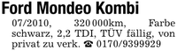 Ford Mondeo Kombi***, ***km, Farbe schwarz, 2,2 TDI, TÜV fällig, von privat zu verk. _ ***