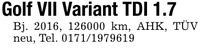 Golf VII Variant TDI 1.7Bj. 2016, *** km, AHK, TÜV neu, Tel. ***