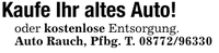 Kaufe Ihr altes Auto! oder kostenlose Entsorgung. Auto Rauch, Pfbg. T. ***