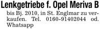 Lenkgetriebe f. Opel Meriva Bbis Bj. 2010, in St. Englmar zu verkaufen. Tel. *** od. Whatsapp