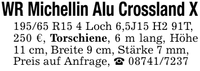 WR Michellin Alu Crossland X195/65 R15 4 Loch 6,5J15 H2 91T,250 €, Torschiene, 6 m lang, Höhe 11 cm, Breite 9 cm, Stärke 7 mm,Preis auf Anfrage, _ ***