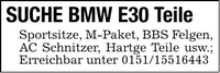 SUCHE BMW E30 Teile Sportsitze, M-Paket, BBS Felgen, AC Schnitzer, Hartge Teile usw.; Erreichbar unter ***