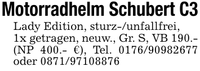 Motorradhelm Schubert C3Lady Edition, sturz-/unfallfrei,1x getragen, neuw., Gr. S, VB 190.- (NP 400.- €), Tel. *** oder ***