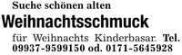 Suche schönen alten Weihnachtsschmuck für Weihnachts Kinderbasar. Tel. *** od. ***