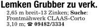 Lemken Grubber zu verk.2,65 m breit-13 Zinken; Suche:Frontmähwerk CLAAS-Corto3,10 m; _ ***