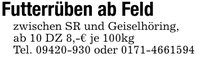 Futterrüben ab Feldzwischen SR und Geiselhöring,ab 10 DZ 8,-€ je 100kgTel. *** oder ***