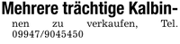 Mehrere trächtige Kalbin-nen zu verkaufen, Tel. ***