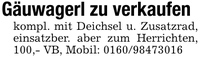 Gäuwagerl zu verkaufenkompl. mit Deichsel u. Zusatzrad, einsatzber. aber zum Herrichten, 100,- VB, Mobil: ***