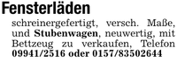 Fensterlädenschreinergefertigt, versch. Maße, und Stubenwagen, neuwertig, mit Bettzeug zu verkaufen, Telefon *** oder ***