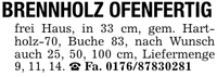 BRENNHOLZ OFENFERTIGfrei Haus, in 33 cm, gem. Hartholz-70, Buche 83, nach Wunsch auch 25, 50, 100 cm, Liefermenge 9, 11, 14. _ Fa. ***