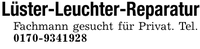 Lüster-Leuchter-ReparaturFachmann gesucht für Privat. Tel. ***