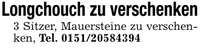 Longchouch zu verschenken 3 Sitzer, Mauersteine zu verschenken, Tel. ***