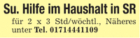Su. Hilfe im Haushalt in SRfür 2 x 3 Std/wöchtl., Näheres unter Tel. ***