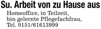Su. Arbeit von zu Hause ausHomeoffice, in Teilzeit,bin gelernte Pflegefachfrau, Tel. ***
