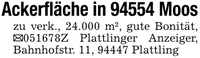 Ackerfläche in 94554 Mooszu verk., 24.000 m², gute Bonität, _***Z Plattlinger Anzeiger, Bahnhofstr. 11, 94447 Plattling