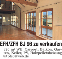 EFH/ZFH BJ 96 zu verkaufen 320 m2 Wfl, Carport, Balkon, Garten, Keller, PV, Holzpelletsheizung _ pfs5@web.de