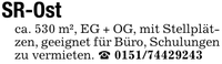 SR-Ost ca. 530 m², EG + OG, mit Stellplätzen, geeignet für Büro, Schulungen zu vermieten. _ ***
