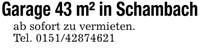 Garage 43 m² in Schambachab sofort zu vermieten. Tel. ***