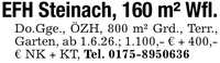 EFH Steinach, 160 m² Wfl.Do.Gge., ÖZH, 800 m² Grd., Terr., Garten, ab 1.6.26.; 1.100,- € + 400,-€ NK + KT, Tel. ***