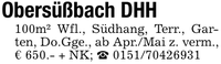 Obersüßbach DHH100m² Wfl., Südhang, Terr., Garten, Do.Gge., ab Apr./Mai z. verm., € 650.- + NK; _ ***