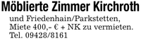 Möblierte Zimmer Kirchrothund Friedenhain/Parkstetten,Miete 400,- € + NK zu vermieten.Tel. ***