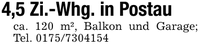 4,5 Zi.-Whg. in Postauca. 120 m², Balkon und Garage; Tel. ***