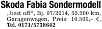 Skoda Fabia Sondermodell"best off", Bj. ***, 55.500 km, Garagenwagen, Preis: 10.500,- €, Tel. ***