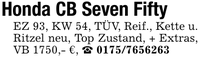 Honda CB Seven FiftyEZ 93, KW 54, TÜV, Reif., Kette u. Ritzel neu, Top Zustand, + Extras, VB 1750,- €, _ ***