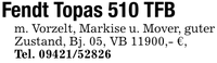 Fendt Topas 510 TFBm. Vorzelt, Markise u. Mover, guter Zustand, Bj. 05, VB 11900,- €,Tel. ***