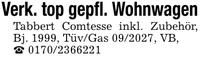 Verk. top gepfl. WohnwagenTabbert Comtesse inkl. Zubehör, Bj. 1999, Tüv/Gas ***, VB,_ ***