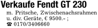 Verkaufe Fendt GT 230m. Pritsche, Zwischenachsrahmen u. div. Geräte, € 9500.- ;_ ***