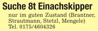 Suche 8t Einachskippernur im guten Zustand (Brantner, Strautmann, Stetzl, Mengele)Tel. ***