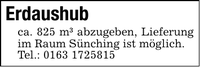 Erdaushubca. 825 m³ abzugeben, Lieferung im Raum Sünching ist möglich. Tel.: ***