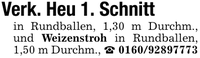 Verk. Heu 1. Schnittin Rundballen, 1,30 m Durchm., und Weizenstroh in Rundballen, 1,50 m Durchm., _ ***