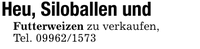 Heu, Siloballen undFutterweizen zu verkaufen,Tel. ***