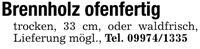 Brennholz ofenfertigtrocken, 33 cm, oder waldfrisch, Lieferung mögl., Tel. ***