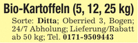 Bio-Kartoffeln (5, 12, 25 kg)Sorte: Ditta; Oberried 3, Bogen; 24/7 Abholung; Lieferung/Rabatt ab 50 kg; Tel. ***