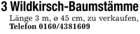 3 Wildkirsch-BaumstämmeLänge 3 m, ø 45 cm, zu verkaufen, Telefon ***
