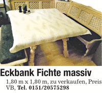 Eckbank Fichte massiv 1,80 m x 1,80 m, zu verkaufen, Preis VB, Tel. ***