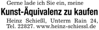 Gerne lade ich Sie ein, meineKunst-Äquivalenz zu kaufenHeinz Schießl, Unterm Rain 24, Tel. 22827. www.heinz-schiessl.de