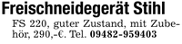 Freischneidegerät StihlFS 220, guter Zustand, mit Zubehör, 290,-€. Tel. ***