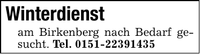 Winterdienstam Birkenberg nach Bedarf gesucht. Tel. ***
