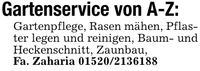 Gartenservice von A-Z:Gartenpflege, Rasen mähen, Pflaster legen und reinigen, Baum- und Heckenschnitt, Zaunbau, Fa. Zaharia ***