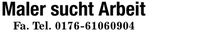 Maler sucht Arbeit Fa. Tel. ***