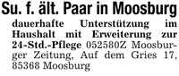 Su. f. ält. Paar in Moosburgdauerhafte Unterstützung im Haushalt mit Erweiterung zur 24-Std.-Pflege ***Z Moosburger Zeitung, Auf dem Gries 17, 85368 Moosburg
