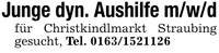 Junge dyn. Aushilfe m/w/dfür Christkindlmarkt Straubing gesucht, Tel. ***